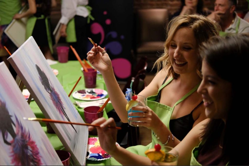 A talented and entertaining local artist will guide you in a 45-minute session to help you create your own masterpiece. And guess what? Experience doesn’t matter at all!”